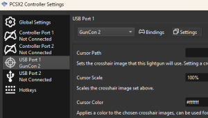 - Click on the USB Port 1 "Guncon 2" to configure player 1